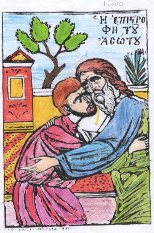 Έτσι απλά, αβίαστα και ελεύθερα το παιδί αυτό βρίσκει τη σωτήριο δύναμη να γυρίσει πίσω στον πατέρα του και τελικά να ενωθεί και πάλι μαζί του. Είναι όμως άξια θαυμασμού και η υποδοχή του πατέρα και πάνω απ’ όλα η συγκινητική διακριτικότητα της αγάπης του. Δε ζητά εξηγήσεις, ούτε τον βομβαρδίζει με ερωτήσεις «Πως; Γιατί; Τι συνέβη;» και αποφάσισε να επιστρέψει. Μονάχα ανοίγει διάπλατα τη στοργική αγκαλιά του και τον σκεπάζει και στήνει ολόκληρο γλέντι για την επιστροφή του.Έτσι και ο Θεός-πατέρας μας, χτυπά διακριτικά την πόρτα της ψυχής μας και περιμένει υπομονετικά να την ανοίξουμε μόνοι μας, για να μπει, να μας κάνει ευτυχισμένους και να δώσει αληθινό νόημα στη ζωή μας.