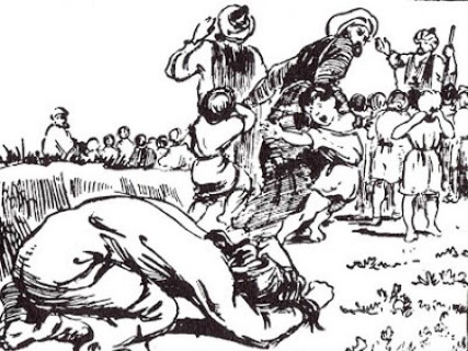 -Ήλιγια… Ήλιγια… Ήλιγια…φώναξε μια άλλη κι έψαχνε με την απελπισμένη της ματιά να συναντήσει το γνωστό της αγαπημένο προσωπάκι, ενώ έλεγε και ξανάλεγε ασταμάτητα το ίδιο, λες κι ήθελε να φυτέψει στο κεφάλι του παιδιού αυτό το όνομα που σε λίγες μέρες θα του το πάρουν για πάντα.»