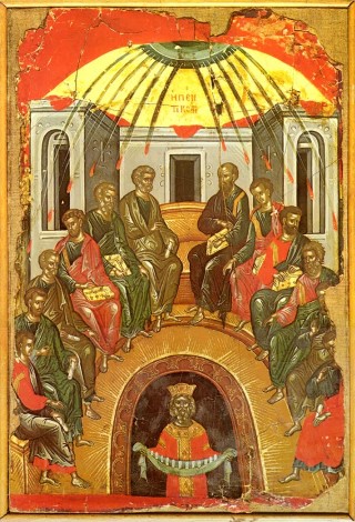 Ἡμέρα τῆς Πεντηκοστῆς. Ἑκατὸν εἴκοσι πιστοὶ κι ἄλλοι ἀκόμη συγκεντρωμένοι στὸ ἴδιο σπίτι, ὅλοι μὲ μιὰ ψυχὴ καὶ μὲ μιὰ καρδιά. Καὶ ξαφνικὰ ἦλθε βοὴ ἀπὸ τὸν οὐρανὸ σὰν βοὴ σφοδροῦ ἀνέμου. Ἡ βοὴ αὐτὴ γέμισε ὅλο τὸ σπίτι ὅπου βρίσκονταν οἱ Ἀπόστολοι καὶ οἱ ἄλλοι Μαθητές. Ὅλα ἔγιναν ξαφνικά, αἰφνιδιαστικά. Ἀπροσδόκητα, ὅπως ξεσπᾶ ξαφνικὸς καὶ βίαιος ἄνεμος. Ἦταν ἕνας ἦχος ἀπὸ τὸν οὐρανὸ σὰν φωνὴ βροντῆς. Γιατί ὅμως ἡ κάθοδος τοῦ Ἁγίου Πνεύματος συνοδεύτηκε μὲ τὸ ὑπερφυσικὸ αὐτὸ φαινόμενο τοῦ βίαιου καὶ ὁρμητικοῦ ἀνέμου; Διότι, ὅπως ἐξηγοῦν οἱ ἱεροὶ ἑρμηνευτές, ἡ ὁδὸς τοῦ Ἁγίου Πνεύματος μοιάζει μὲ τὴν ὁδὸ τοῦ ἀνέμου ποὺ ἀκοῦς τὴν πνοή του ἀλλὰ δὲν ξέρεις ἀπὸ ποῦ ἔρχεται καὶ ποῦ πηγαίνει. Δὲν ἦταν βέβαια ὁ ἄνεμος αὐτὸς κάποιο φυσικὸ φαινόμενο. Ἦταν ἕνα γεγονὸς ὑπερφυσικοῦ χαρακτῆρος. Ἡ πνοὴ τοῦ ἀνέμου ἦταν σύμβολο τῆς ἐκχύσεως τοῦ Ἁγίου Πνεύματος στοὺς συναγμένους Μαθητές. Ἦταν τὸ σύμβολο τῆς μυστηριώδους ἐνεργείας τοῦ θείου Πνεύματος. Διότι ἡ πνοὴ αὐτὴ ἤθελε νὰ δείξει ὅτι μία ἄλλη πνοὴ πνευματικὴ ἐκείνη τὴν ὥρα κατερχόταν στὶς ψυχὲς τῶν πρώτων πιστῶν. Καὶ ἡ πνοὴ αὐτὴ τοὺς γέμισε ὁλοκληρωτικά. Πλήρωσε τὶς ψυχὲς καὶ τὰ σώματά τους. Τοὺς πλημμύρισε μὲ θεῖες καὶ ἔξοχες δωρεές. Ἐκείνη τὴ συγκλονιστικὴ ὥρα, ὅλο τὸ σπίτι ὅπου βρίσκονταν οἱ Μαθητὲς ἔγινε μὲ τὴν πνοὴ τοῦ Ἁγίου Πνεύματος μιὰ ἀόρατη πνευματικὴ κολυμβήθρα ποὺ μεταμόρφωσε τοὺς πιστούς, τοὺς μετέδωσε μοναδικὰ ὑπερφυσικὰ χαρίσματα καὶ εὐλογίες. Ὅλοι πλημμύρισαν μὲ Πνεῦμα Ἅγιον. Γέμισαν μὲ τὶς χάριτές του. Ἔγιναν πλέον ἄλλοι ἄνθρωποι. Καινούργιοι. Ἔφυγαν οἱ φόβοι τους καὶ οἱ δισταγμοί τους. Ἀπέκτησαν ὑπερφυσικὲς ἱκανότητες νὰ κάνουν θαύματα. Κι ἔτρεξαν ἐνισχυόμενοι ἀπὸ θεία δύναμη στὰ πέρατα τῆς οἰκουμένης νὰ κηρύξουν τὸ μήνυμα τῆς Ἀναστάσεως. Καὶ ἄλλαξαν ὅλο τὸν κόσμο