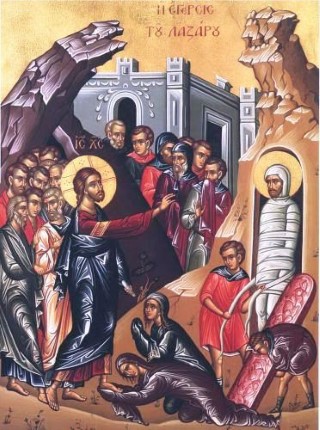 Ἡ εἰκόνα τῆς Ἔγερσης τοῦ Λαζάρου μᾶς προτρέπει νά θυμηθοῦμε τά βαρυσήμαντα λόγια του Κυρίου' «Ἐγώ εἰμι ἡ ἀνάστασις καί ἡ ζωή. Ὁ πιστεύων εἰς ἐμέ, καν ἀποθάνη, ζήσεται' καί πᾶς ὁ ζῶν καί πιστεύων εἰς ἐμέ οὐ μή ἀποθάνη εἰς τόν αἰώνα» (Ἴω. 11, 25-26).