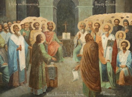 Εάν ξεφυλλίσουμε προσεκτικά το ημερολόγιο της Εκκλησίας μας, θα παρατηρήσουμε ότι τρεις Κυριακές το χρόνο έχει «Κυριακή των αγίων πατέρων».Μια φορά μετά την εορτή της Αναλήψεως, όπου εορτάζουμε τους πατέρες της Α΄ Οικουμενικής Συνόδου, που έγινε στην Νίκαια και καταδίκασε τον Άρειο, ο οποίος δίδασκε ότι ο Χριστός είναι κτίσμα και όχι Θεός.