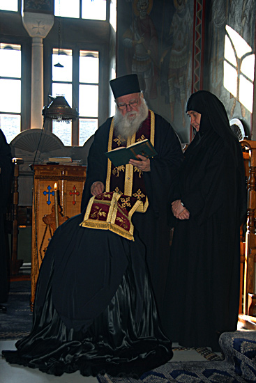 Όταν έφτασαν, η μοναχή του είπε να περάσει στην κουζίνα να πάρει έναν καφέ. Μόλις τελείωσε η μοναχή την εξομολόγησή της, είπε στον ταξιτζή:– Θέλεις να πας μέσα να πεις καμιά λέξη να εξομολογηθείς και να πάρεις την ευχή του;Ο ταξιτζής δέχτηκε, μπήκε μέσα, πήρε την ευχή του και άρχισε να εξομολογείται.