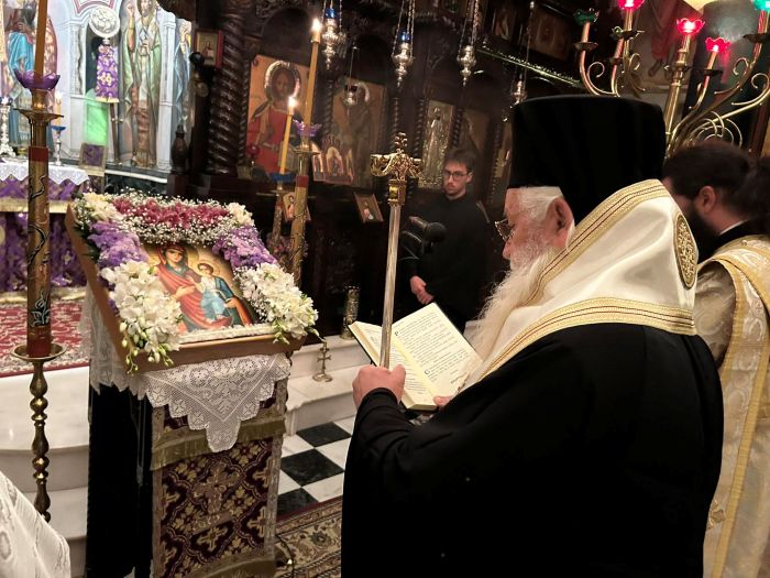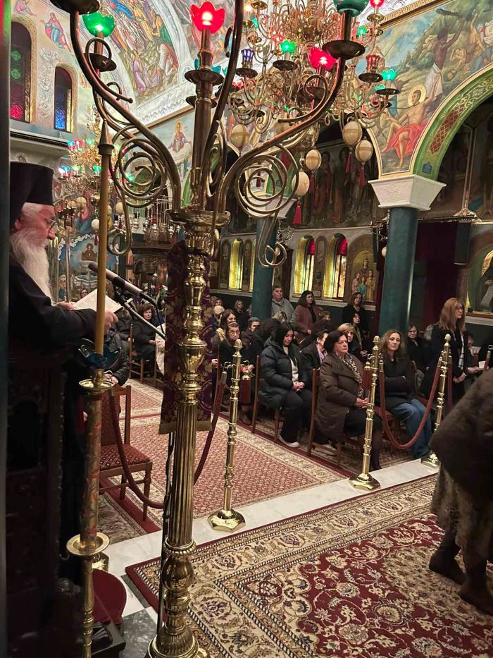 Μέσα στην κατανυκτική ατμόσφαιρα της Αγίας και Μεγάλης Τεσσαρακοστής, τελέστηκε στην Ενορία μας η ακολουθία της Γ΄ Στάσεως των Χαιρετισμών προς την Υπεραγία Θεοτόκο, Χοροστατούντος του Σεβ. Ποιμενάρχου μας κ. Γεωργίου, ο οποίος με πατρική αγάπη και ποιμαντικό λόγο απηύθυνε πνευματική διδασκαλία προς το εκκλησίασμα παρουσιάζοντας την Παναγία μας ως λιμάνι και ως κιβωτό σωτηρίας μεσά στην θορυβώδη και ρευστή ατμόσφαιρα που διανύουμε και σε εθνικό αλλά και σε παγκόσμιο επίπεδο.
